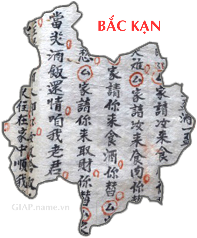 Bắc Kạn là một tỉnh thuộc vùng Đông Bắc Việt Nam. Bản sao bài văn bia “Tam hải hồ sơn chí” bằng tiếng Hán khắc trên đá dựng ở Bó Lù, bờ hồ Ba Bể, do tác giả Phan Đình Hoè án sát tỉnh Bắc Kạn viết, ông Vi Văn Thượng khắc và dựng bia năm 1925: Chữ “Kạn” trong từ Bắc Kạn có bộ “tài gẩy” bên chữ “Can”, âm Hán Việt đọc là “cản”, chữ này có nghĩa là “ngăn giữ, bảo vệ, chống cự” (phía bắc).